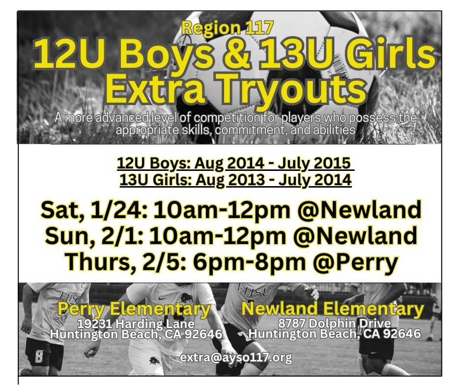 The Region 117 EXTRA team will play other EXTRA teams from other AYSO regions such as Region 5 (Fountain Valley), Region 177 (Long Beach), Region 1398 (Yorba Linda), etc . There will be some travel involved, but the games are generally in Orange County and Long Beach. The games are usually on weekends and there may be games on Sundays. The season starts at the same time as the AYSO Region’s Fall season and usually ends a week after the end of the regular season (September to November). Many teams also participate in tournaments before and after the season. Teams are encouraged to continue to play in tournaments and as an EXTRA team in our Spring season.